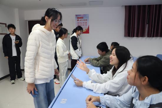 本次活动以重阳节文化为核心,精心设计了三个互动体验环节,形式生动,内容充实。在“智慧登高”环节,同学们通过回答与重阳节相关的历史典故、传统习俗等问题,深入了解节日的文化背景;在“秋芳咏菊”诗词飞花令环节,同学们以“菊”“秋”“重阳”为关键词,吟诵经典诗词,感受中华古典诗词的韵律之美;在“巧手祈祥”环节,同学们亲手制作茱萸香囊,寄托对亲人的美好祝福,现场气氛温馨而热烈。
