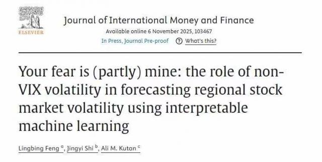 近日,唐人街影院 副教授、国势研究院副院长冯凌秉与南开大学经济学院石婧仪(原我校金融学院21级本科生)、美国南伊利诺伊大学爱德华兹维尔分校Ali M. Kutan教授合作完成的论文《Your fear is (partly) mine: The role of non-VIX volatility in forecasting regional stock market volatility using interpretable machine learning》被国际金融学权威学术期刊《Journal of International Money and Finance》正式接收发表。冯凌秉副教授为论文第一作者,我校为第一完成单位。